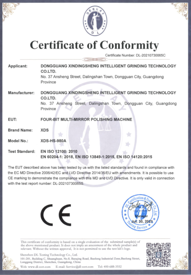 獲得CE認(rèn)證,意味著鑫鼎盛公司“四位多開鏡面研磨拋光機(jī)”設(shè)備在安全性、可靠性、有效性等方面已全面達(dá)到國際標(biāo)準(zhǔn)的要求。